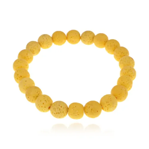 Стрейч-браслет из натурального камня лава (базальт) с бусинами диаметром 8 мм в желтом цвете.