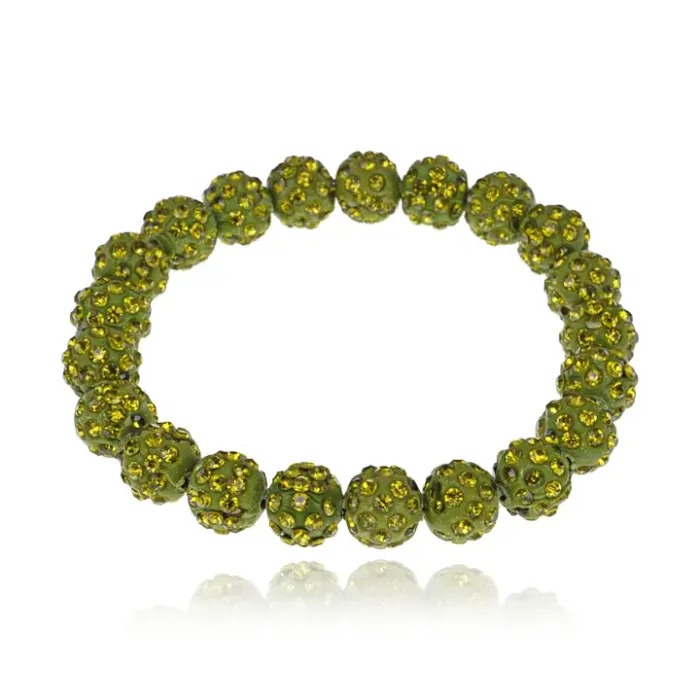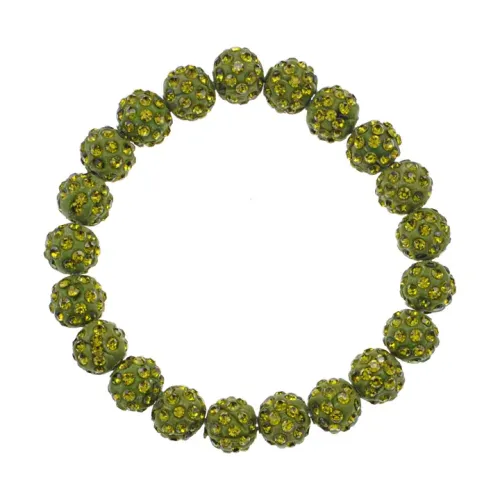 Стрейч-браслет из бусин Шамбала диаметром 10 мм в зелёном цвете.