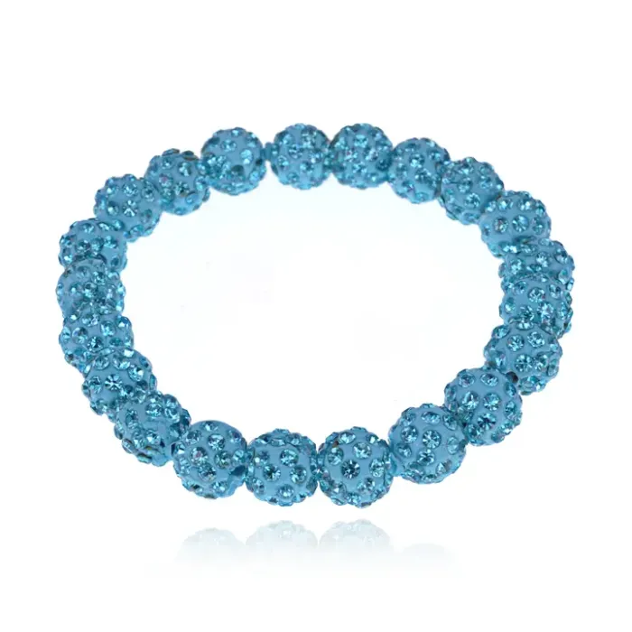 Стрейч-браслет из бусин Шамбала диаметром 10 мм в голубом цвете.
