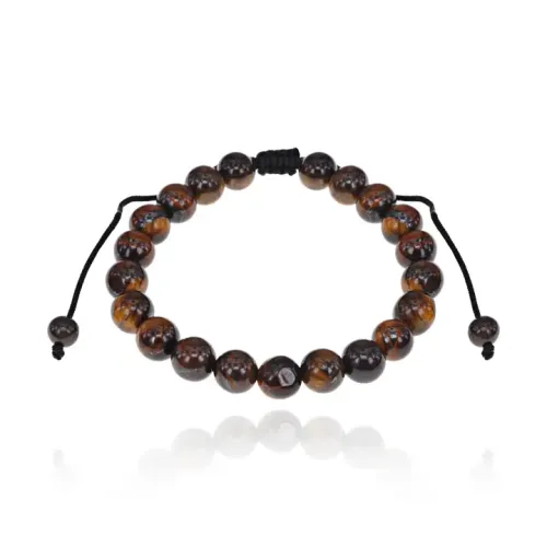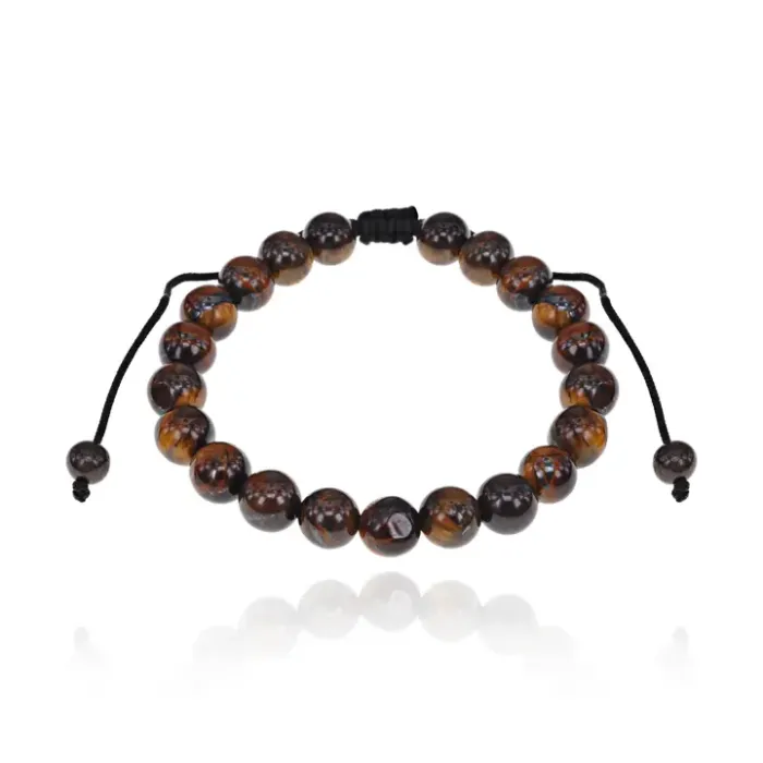 Браслет из натурального камня Тигровый глаз с бусинами диаметром 8 мм и регулируемым обхватом запястья.