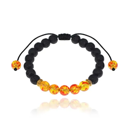 Браслет из натуральной Лавы и синтетического Янтаря, 8мм BJBS-317