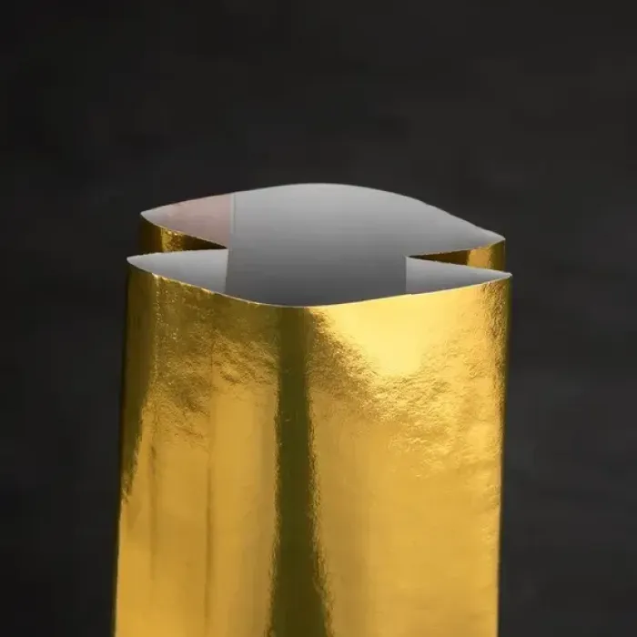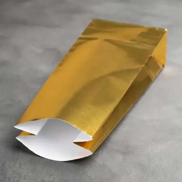 Двухслойный пакет предназначен для упаковки и хранения рассыпного чая. Его конструкция обеспечивает защиту содержимого от влаги и посторонних запахов. Пакет выполнен с золотым глянцевым покрытием.