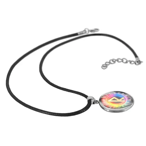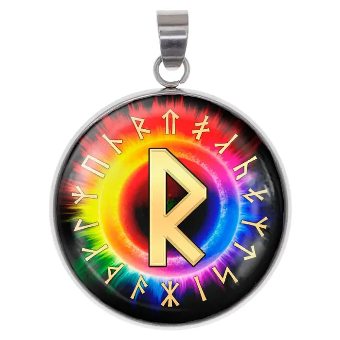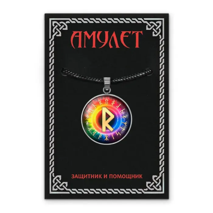 Кулон-амулет из нержавеющей стали с изображением славянской руны под стеклянной линзой.