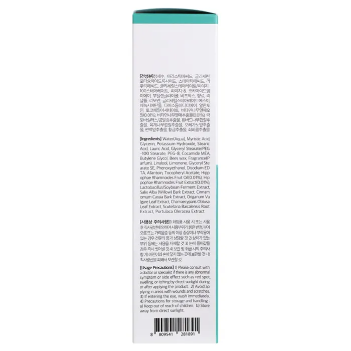 Состав: Purified water, myristic acid, glycerin, potassium hydroxide, stearic acid, lauric acid, glyceryl stearate/PEG-100 stearate, PEG-8, Cocamide MEA, Butylene Gylcol, Beeswax, Fragrance; Linalool; Limonene; Glyceryl stearate SE; Phenoxyethanol; Disodium EDTA; Allantoin; Tocopheryl Acetate; Hippophae Rhamnoides Fruit Oil & Extract; Lactobacillus/Soybean ferment extract; Salix alba (willow) bark extract; Cinnamomum cassia bark extract; Origanum vulgare leaf extract; Chamaecyparis obtusa leaf extract; Scutellaria baicalensis root extract; Portulaca oleracea extract.