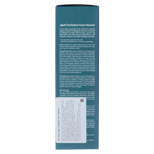 Очищающая пенка для лица Jigott Cicateatree Foam Cleanser с экстрактами центеллы азиатской и чайного дерева предназначена для деликатного ухода за кожей. Средство эффективно удаляет ороговевшие клетки, обеспечивая глубокое очищение кожи. Экстракты центеллы азиатской и чайного дерева обладают успокаивающим эффектом, помогая снять раздражения и поддерживать здоровье кожи. Пенка сохраняет влагу в коже даже после очищения, что делает её идеальной для ежедневного использования.