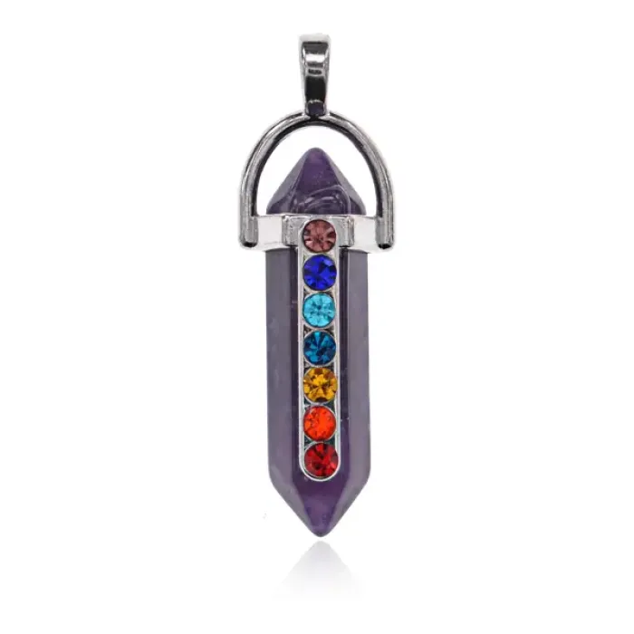 Маятник для биолокации Семь чакр, аметист BLK025-04
