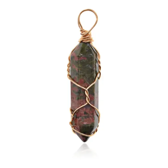 Маятник для биолокации с камнем Унакит BLK036-08