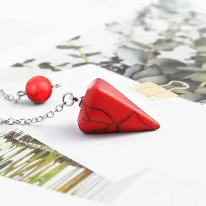 Маятник для биолокации из синтетического камня и металла с покрытием под серебро.