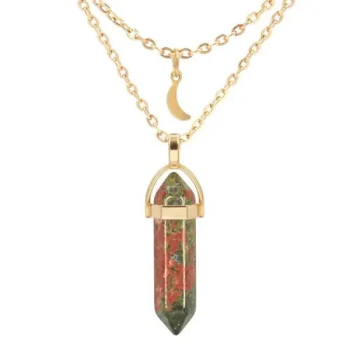Кулон-маятник на цепочке с камнем Унакит. Изготовлен из натурального камня и бижутерного сплава с покрытием под золото.