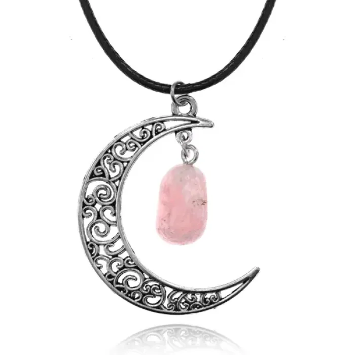Кулон Месяц на шнурке с камнем Розовый кварц BJK281-02