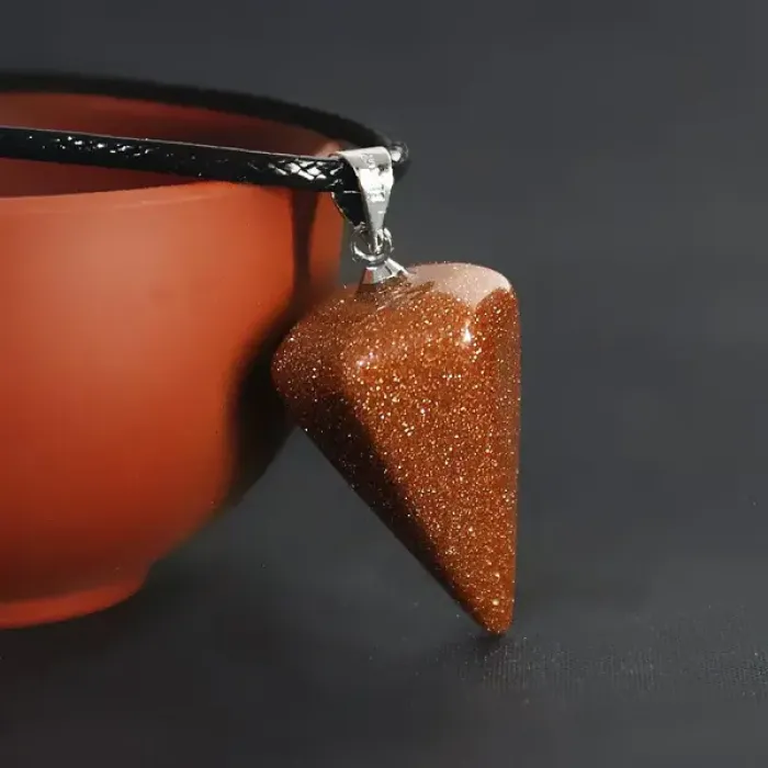 Кулон-маятник для биолокации из синтетического коричневого авантюрина с замком типа лобстер.
