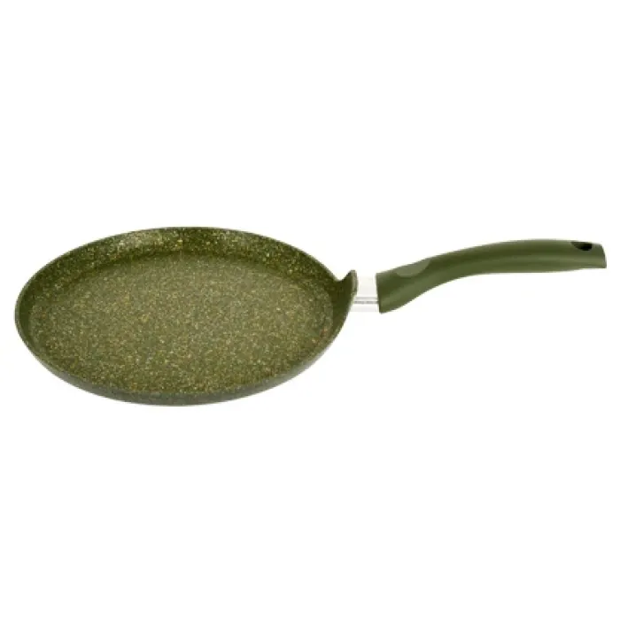 Блинная сковорода KUKMARA из коллекции Trendy style malachite предназначена для приготовления блинов, омлетов и других блюд. Изделие изготовлено из литого алюминия и оснащено антипригарным покрытием.