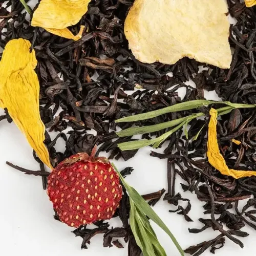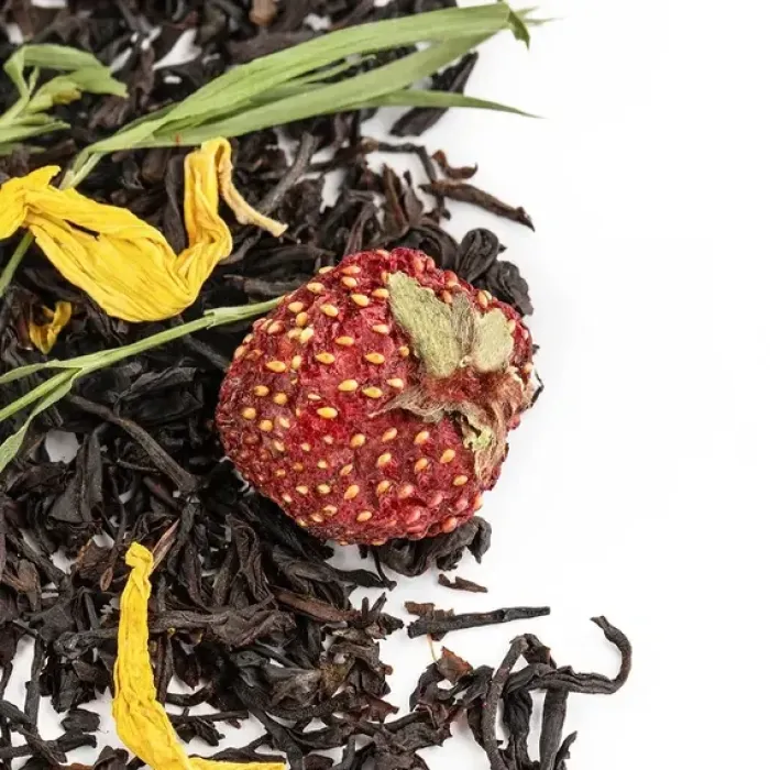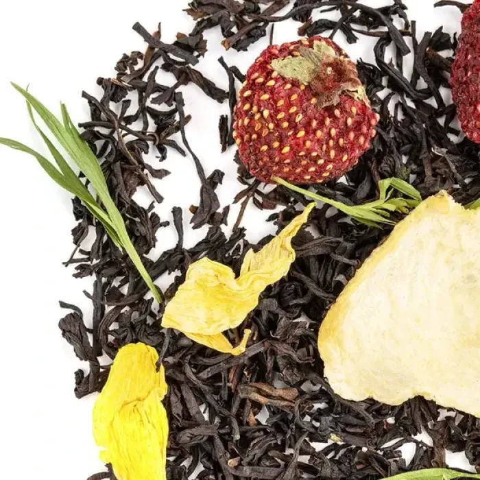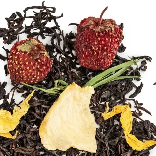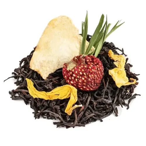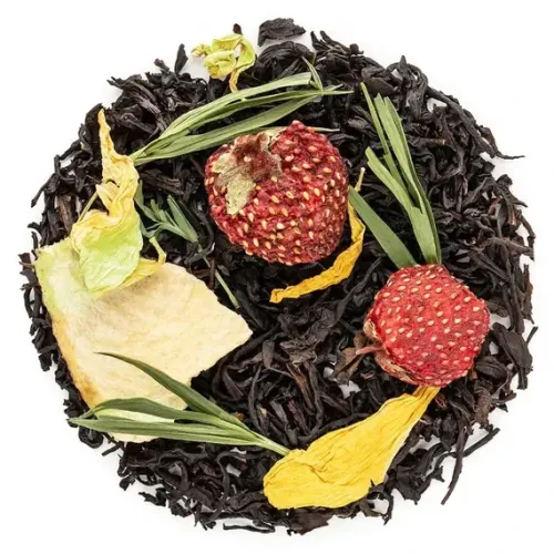 Этот чёрный ароматизированный чай создаёт яркий фруктовый букет на основе насыщенного индийского чая. В его аромате и вкусе доминируют сочные ноты клубники и спелой дыни, дополненные свежестью листьев бамбука и цветочными акцентами.