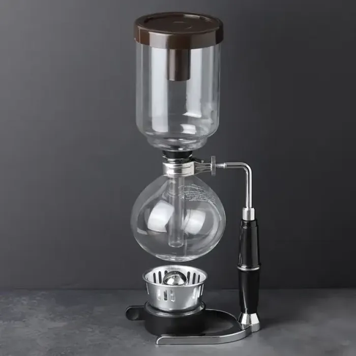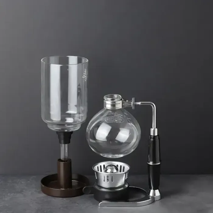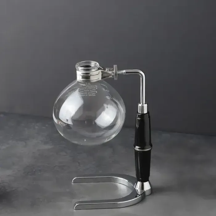 Сифон для чая и кофе — это устройство для приготовления напитков методом вакуумной экстракции. Он состоит из двух стеклянных колб, закреплённых на металлическом штативе, и использует спиртовую горелку в качестве источника нагрева.