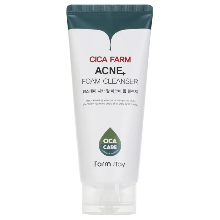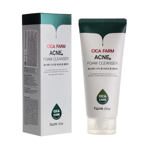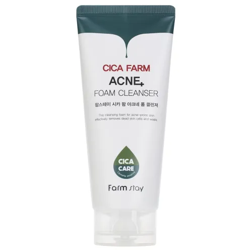 FarmStay Cica Farm Acne Foam Cleanser — это очищающая пенка, специально разработанная для проблемной кожи. Она эффективно удаляет загрязнения и излишки кожного себума, обеспечивая глубокое очищение пор. Средство помогает избавиться от несовершенств кожи и предотвращает их повторное появление. Экстракт центеллы азиатской успокаивает кожу и ускоряет процессы восстановления поврежденных участков. Салициловая кислота снижает активность сальных желез, проникает в поры и растворяет черные точки. Экстракт чайного дерева улучшает текстуру кожи, придавая ей сияние и восстанавливая кожный барьер. Пенка подходит для комбинированной, жирной, проблемной, чувствительной и раздраженной кожи.