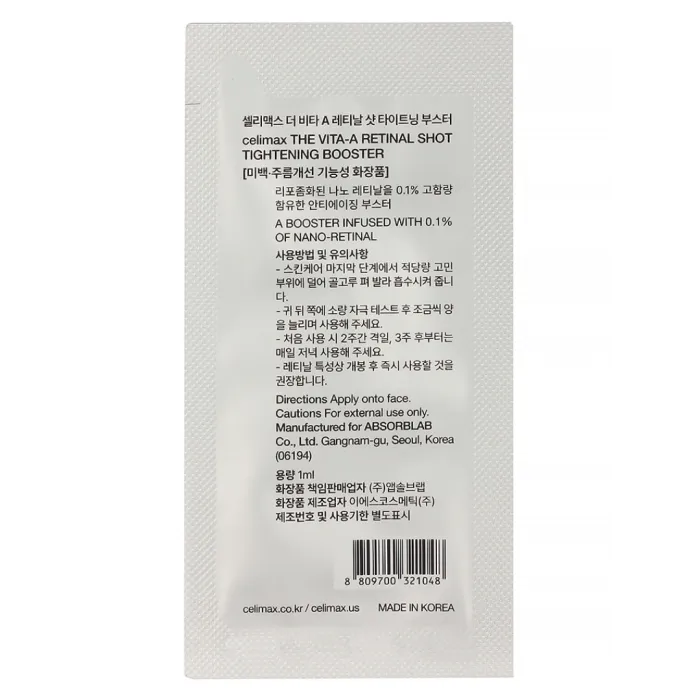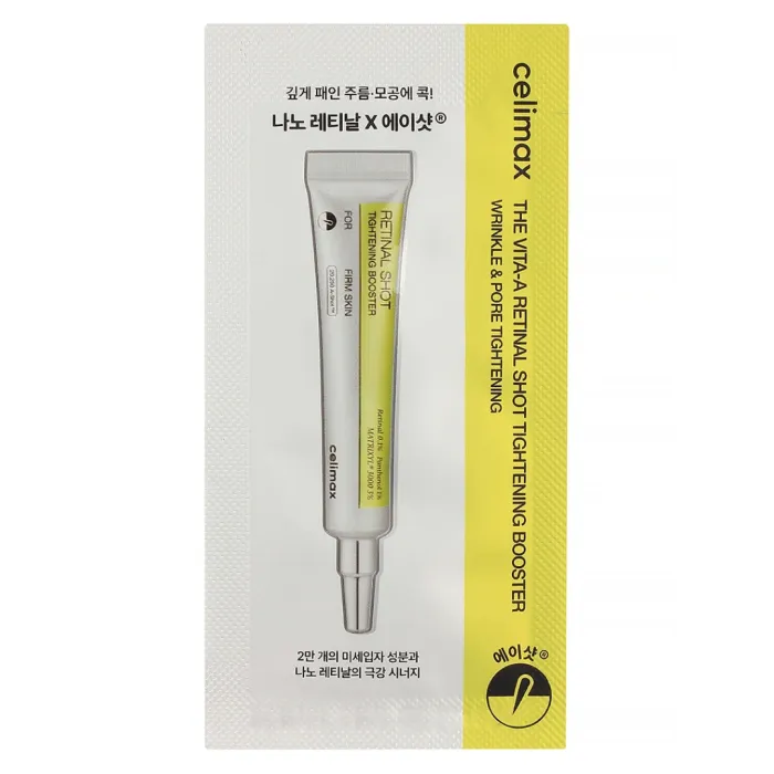 Сыворотка CELIMAX THE VITA-A RETINAL SHOT TIGHTENING BOOSTER — это инновационное средство для ухода за кожей лица, разработанное для повышения эластичности и упругости кожи. Формула сыворотки включает 0,1% нано-ингредиентов, стабилизированных липосомами, что обеспечивает более глубокое проникновение активных компонентов в кожу. В составе присутствуют 20 250 микрочастиц A-shot и запатентованный низкомолекулярный пептид Matrixyl 3000 (3%), которые способствуют обновлению клеток и оказывают подтягивающий эффект.