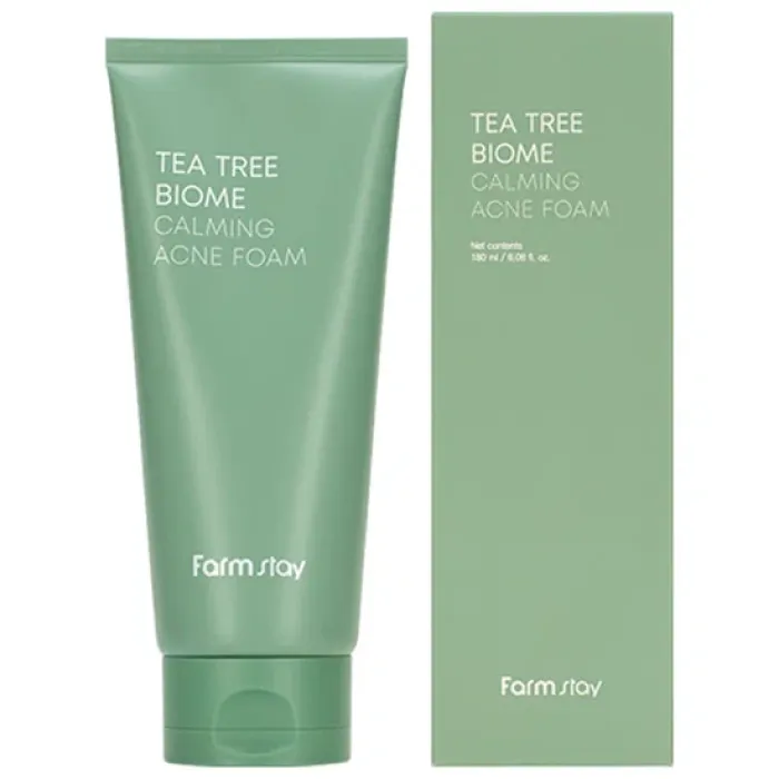 Успокаивающая пенка для умывания Tea Tree Biome Calming Acne Foam от FarmStay предназначена для ухода за проблемной кожей. Благодаря содержанию экстракта чайного дерева и ВНА-кислоты, средство эффективно удаляет остатки макияжа, загрязнения и излишки кожного сала. Пенка обладает матирующим эффектом и контролирует работу сальных желез, что делает её идеальной для комбинированной, жирной и проблемной кожи.