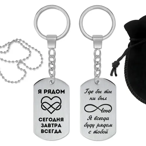 Размеры и комплектация: Размер жетона 50х28 мм. В комплекте кольцо для ключей на цепочке, шариковая цепочка, бархатный мешочек.