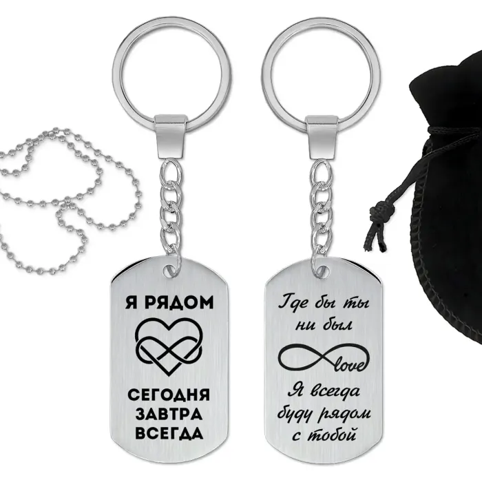 Двусторонний брелок-кулон из полированной нержавеющей стали с гравировкой.