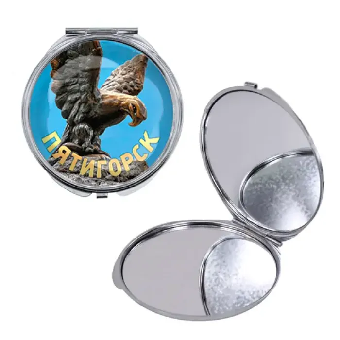 Складное зеркало круглой формы для личного пользования, выполнено из металла и стекла с полноцветным изображением.