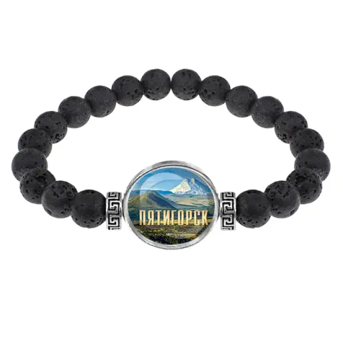 Стрейч-браслет из натуральной лавы с изображением под выпуклой стеклянной линзой.