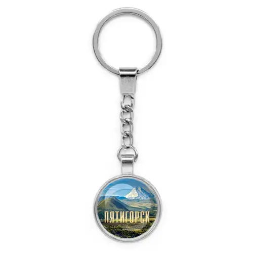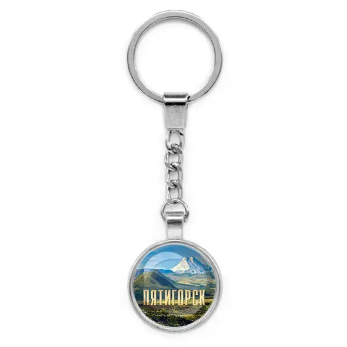 Круглый брелок, цвет серебро, с цепочкой, Пятигорск C0802022