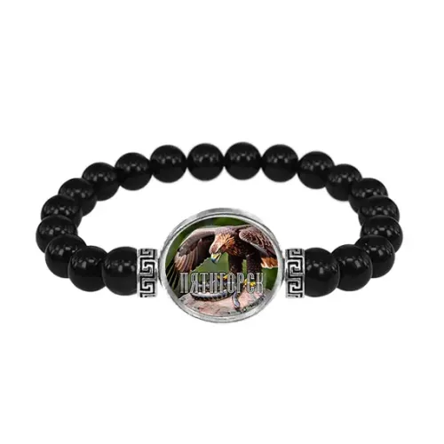 Стрейч-браслет из натурального чёрного агата с декоративным элементом под стеклянной линзой.