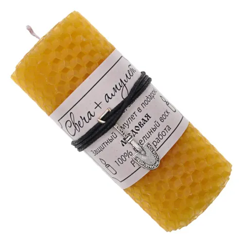 Медовая свеча-амулет ручной работы, выполненная из 100% пчелиного воска, станет не только стильным элементом декора, но и символом привлечения финансового благополучия. Высота свечи составляет около 10,5 см, а диаметр — примерно 3,5 см. Эта свеча традиционно используется для создания атмосферы уюта и гармонии в доме. Необходимо использовать её с подсвечником и не оставлять горящей без присмотра. Перед зажиганием рекомендуется удалить все элементы декора.