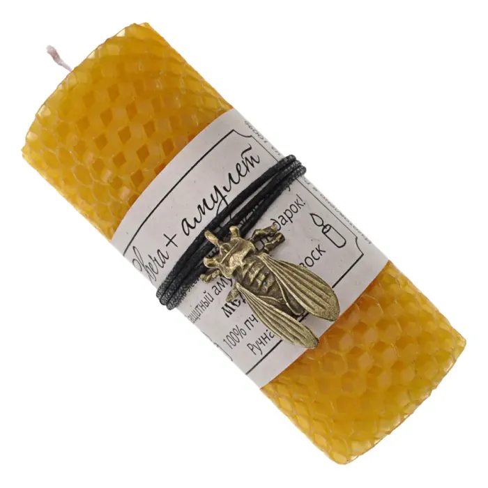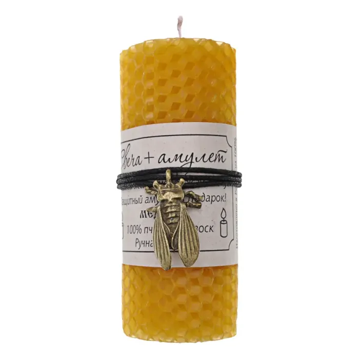 Медовая свеча-амулет ручной работы, выполненная из 100% пчелиного воска, станет не только оригинальным украшением интерьера, но и символом удачи. Высота свечи составляет около 10,5 см, а диаметр — примерно 3,5 см. Эта свеча традиционно используется для создания уютной атмосферы и привлечения положительной энергии в дом. Рекомендуется использовать её с подсвечником и не оставлять горящей без присмотра. Перед зажиганием необходимо удалить все элементы декора.