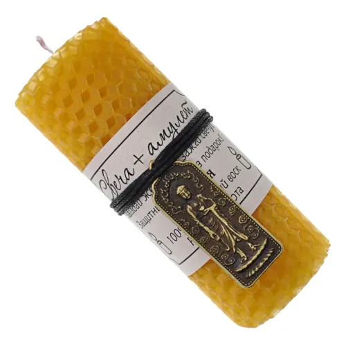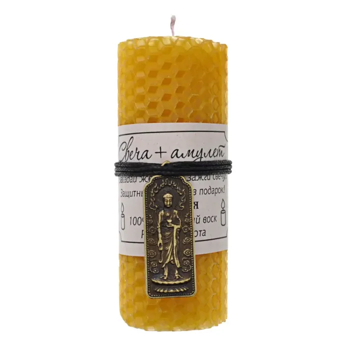 Свеча-амулет ручной работы из пчелиного воска с символом Гуаньинь.