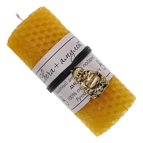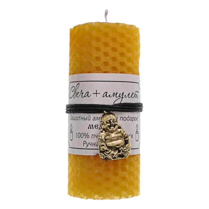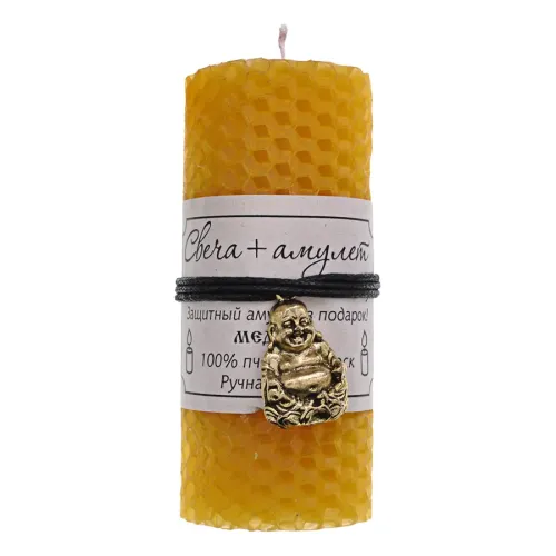 Медовая свеча-амулет ручной работы символизирует благополучие и удачу. Изготовлена из 100% пчелиного воска, она не только создает уютную атмосферу, но и приносит положительную энергетику в дом.