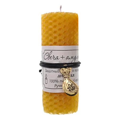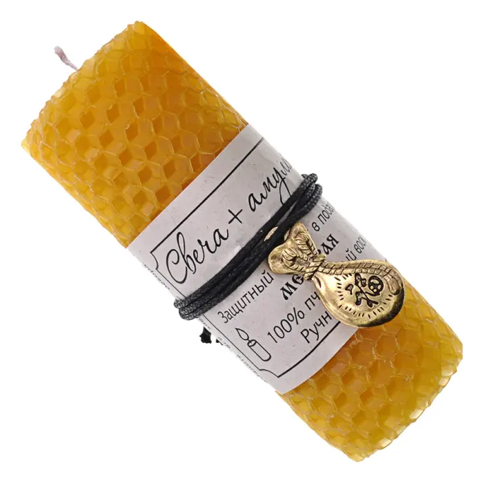 Свеча-амулет ручной работы из пчелиного воска с дизайном «Денежный мешок».