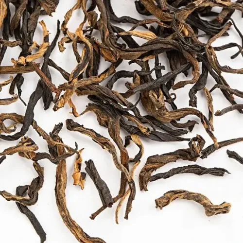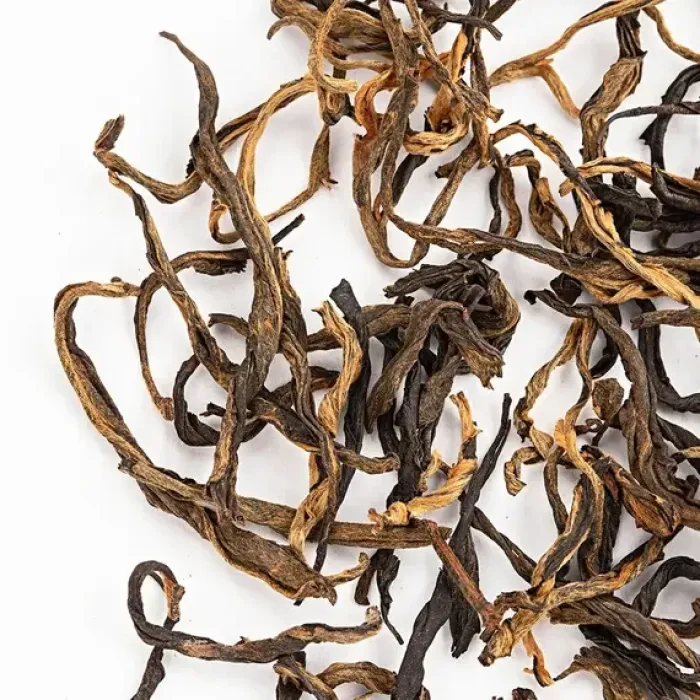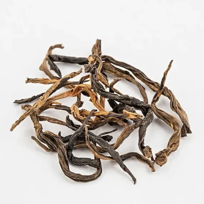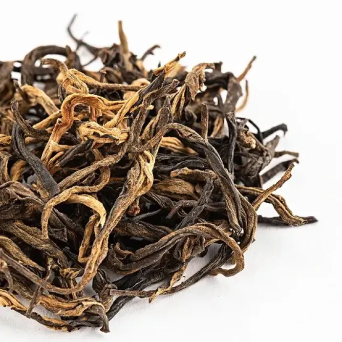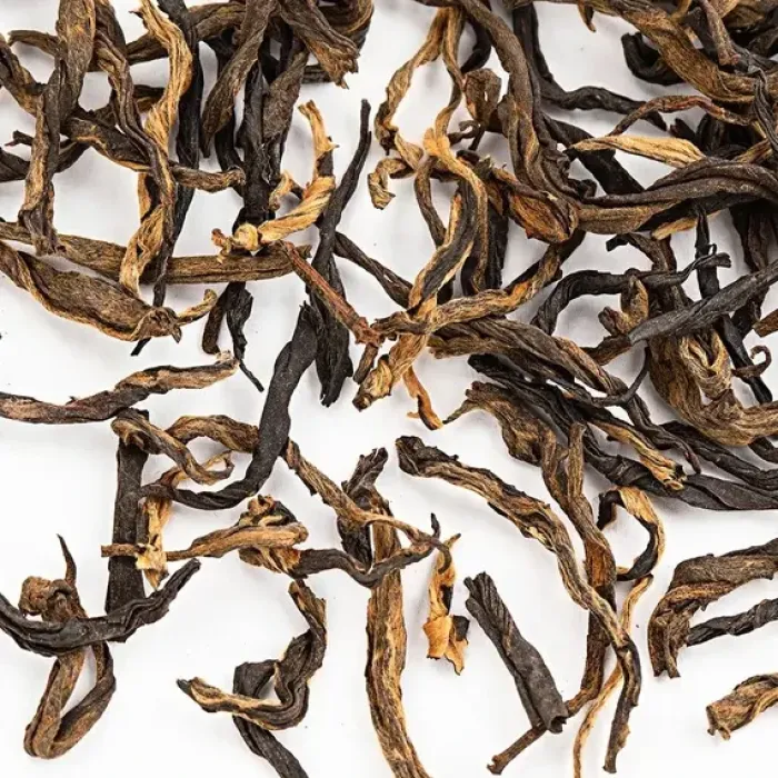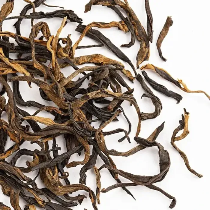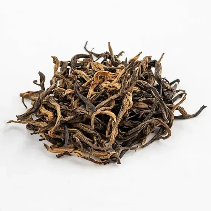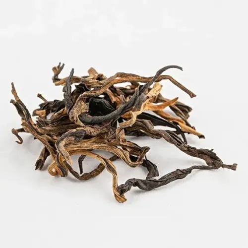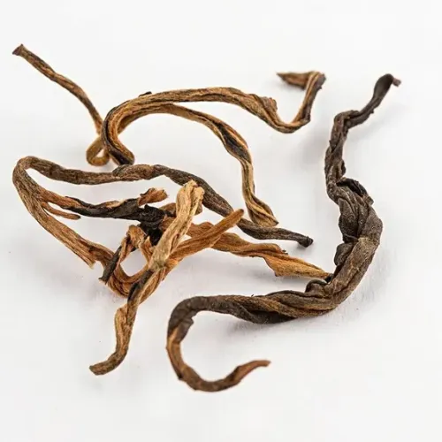 Китайский красный чай Цзин Хао Дянь Хун, известный как Золотая Обезьяна, родом с высокогорных плантаций Юннани. Его отличает насыщенный золотистый настой и листья, скрученные в характерные жгутики с золотистым отливом молодых почек.