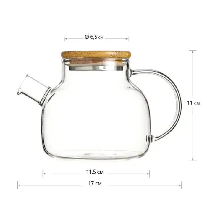 - Материал корпуса: жаропрочное стекло- Объём: 600 мл- Материал крышки: дерево с металлической окантовкой и силиконовым ободком- Конструкция носика: цилиндрический с пружинкой- Тип ручки: С-образная
