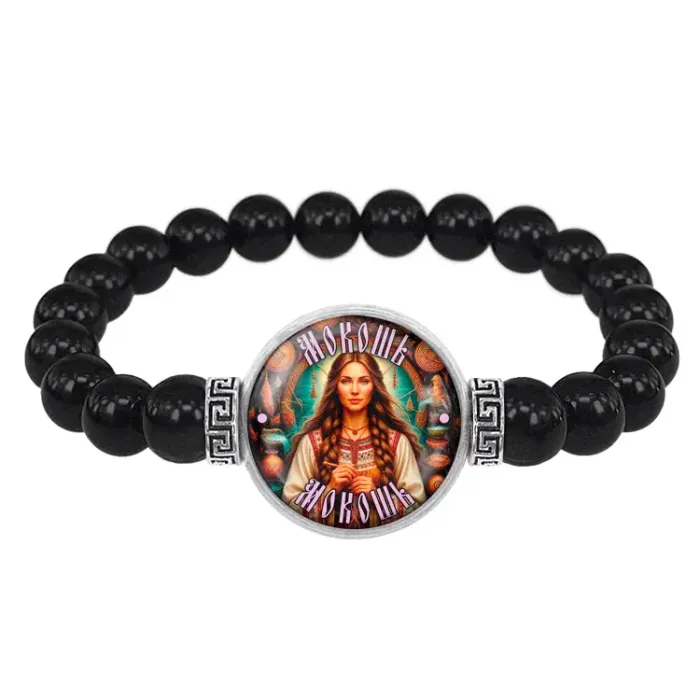 Браслет из черного агата Славянские боги Мокошь BSBA-254