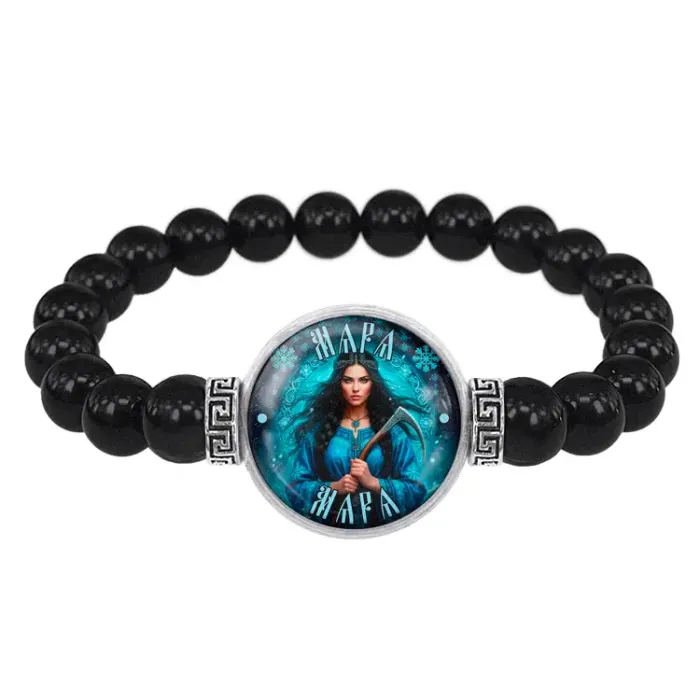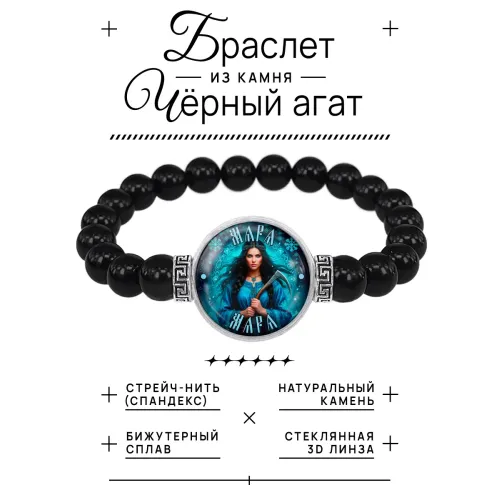 Браслет из черного агата Славянские боги Мара BSBA-256