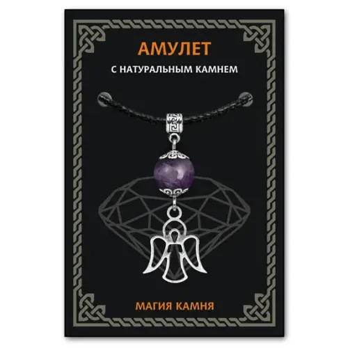 Амулет Ангел-хранитель с камнем аметист символизирует мир, равновесие и гармонию. Этот уникальный аксессуар традиционно используется для защиты от конфликтов и негатива, помогая принимать решения в нестандартных ситуациях. В рамках коллекции Магия камня 2, амулет дополнен вкладышем с краткими описаниями значений всех камней и подвесок-талисманов. Упакован в прозрачный полипропиленовый пакет с европодвесом, он также включает чёрный ХБ шнурок для удобства ношения. Дизайн амулета защищён авторскими правами.