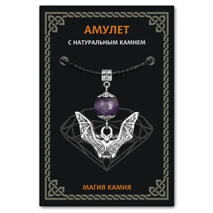 Амулет Летучая мышь (защита, счастье, успех), аметист MKA21-12