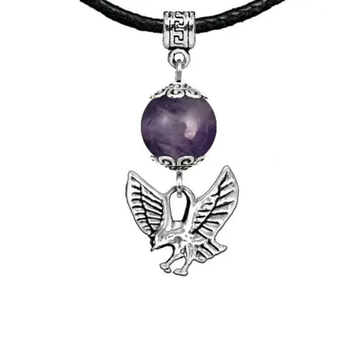 Амулет "Орёл" — это не только стильный аксессуар, но и мощный символ защиты и силы. Изготовленный из аметиста, этот амулет традиционно используется для достижения гармонии и равновесия в жизни. Он помогает справляться с конфликтами и негативными мыслями, создавая атмосферу покоя.