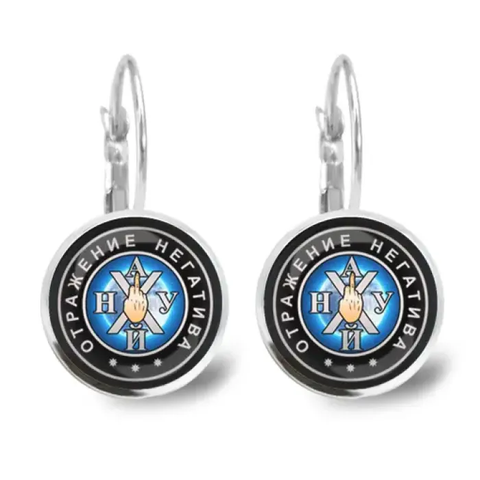 Серьги из бижутерного сплава с покрытием под серебро и стеклянными линзами. Дизайн включает английскую и французскую застёжку (левербэк).
