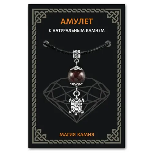 Амулет Черепаха — это не просто украшение, а символ здоровья и долголетия. Изготовленный из граната, этот амулет традиционно ценится за свою способность привлекать творчество, страсть и верность. Он олицетворяет силу семьи и дружбы, защищая от врагов и измены.