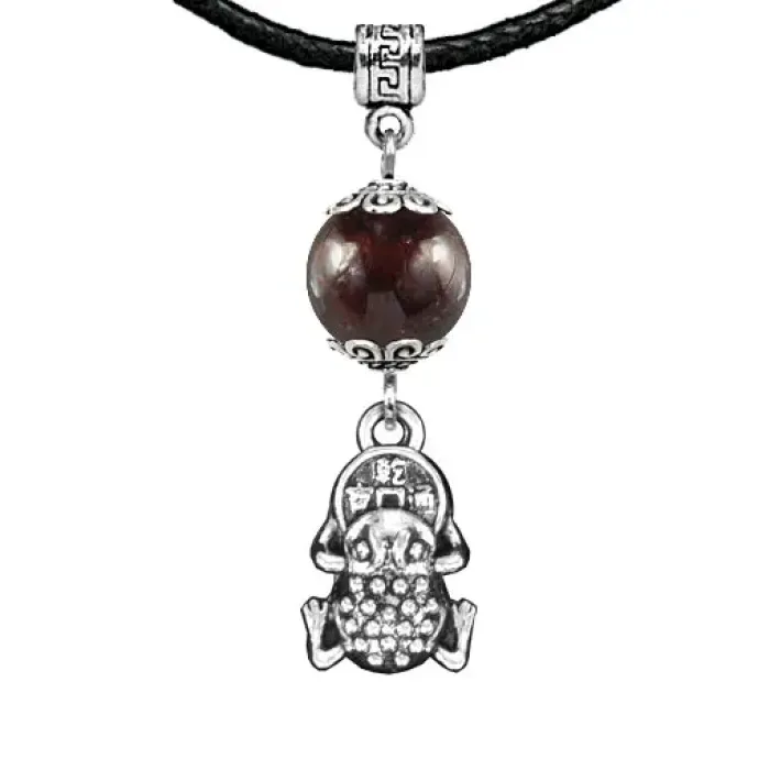 Амулет Лягушка с монетой (богатство), гранат MKA22-23