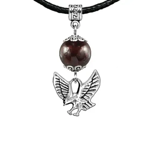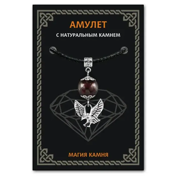 Амулет Орёл — это символ силы и защиты, который помогает в достижении целей и преодолении трудностей. Гранат, используемый в этом амулете, традиционно ценится за свою способность вдохновлять на творчество и укреплять верность в отношениях. Основные особенности: