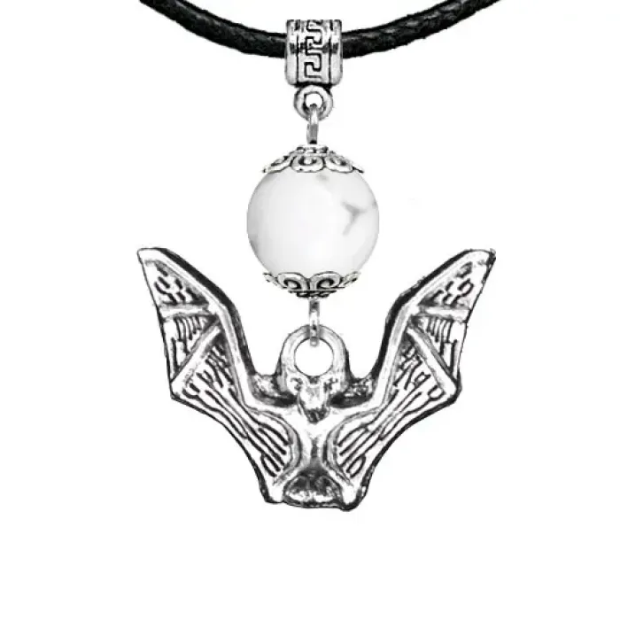 Амулет в виде летучей мыши из камня кахолонг, коллекция «Магия камня 2». Уникальный дизайн с авторскими правами.