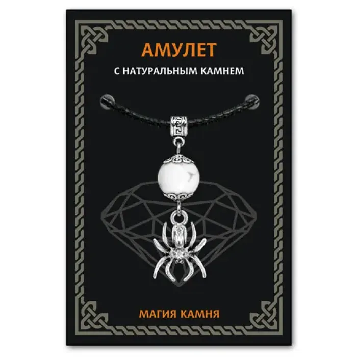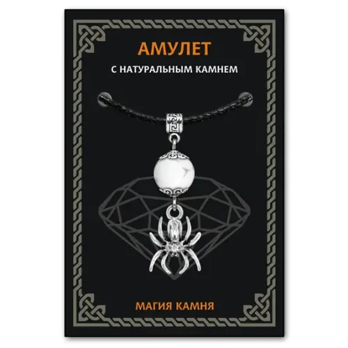 Амулет Паук из коллекции Магия камня 2 символизирует защиту, трудолюбие и достаток. Изготовленный из кахолонга, этот амулет традиционно ценится за свои положительные качества — добро, семейные узы и гармонию. Он помогает наладить равновесие в жизни и защищает от негативной энергии. Вкладыш с краткими описаниями значений камней и подвесок-талисманов добавляет дополнительную ценность. Амулет упакован в прозрачный полипропиленовый пакет с европодвесом для удобства хранения или подарка. В комплект также входит чёрный ХБ шнурок для ношения.