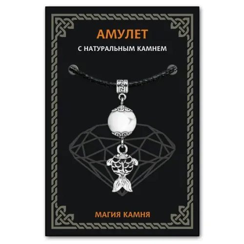 Амулет 'Золотая рыбка' из коллекции 'Магия камня 2' символизирует исполнение желаний и приносит удачу. Изготовленный из кахолонга, этот амулет ассоциируется с добром, семейным счастьем и гармонией. Он традиционно используется для защиты от негативной энергии и привлечения изобилия в жизнь. В комплект входит черный хлопковый шнурок, а также вкладыш с описанием значений камней и подвесок-талисманов. Амулет упакован в прозрачный пакет с европодвесом, что делает его отличным подарком или личным оберегом.