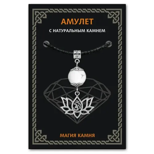 Амулет Ом и лотос — это не просто украшение, а символ защиты и гармонии. Изготавливаемый из кахолонга, этот амулет традиционно ценится за свои положительные качества: он приносит добро, способствует укреплению семейных уз и поддерживает здоровье. Кахолонг ассоциируется с плодородием и изобилием, помогает наладить равновесие в жизни и развивает интуицию.