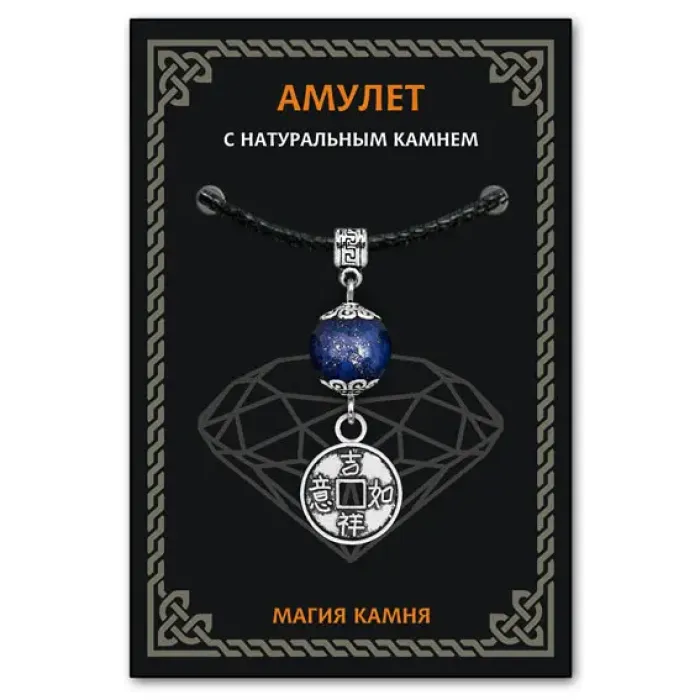 Амулет Монетка из коллекции Магия камня 2 — это не только стильный аксессуар, но и символ удачи и благополучия. Лазурит, используемый в этом амулете, традиционно ценится за свою способность привлекать успех и искренние чувства. Он помогает в духовном развитии, способствует дружбе и любви, а также защищает от негативной энергии и старых обид.
