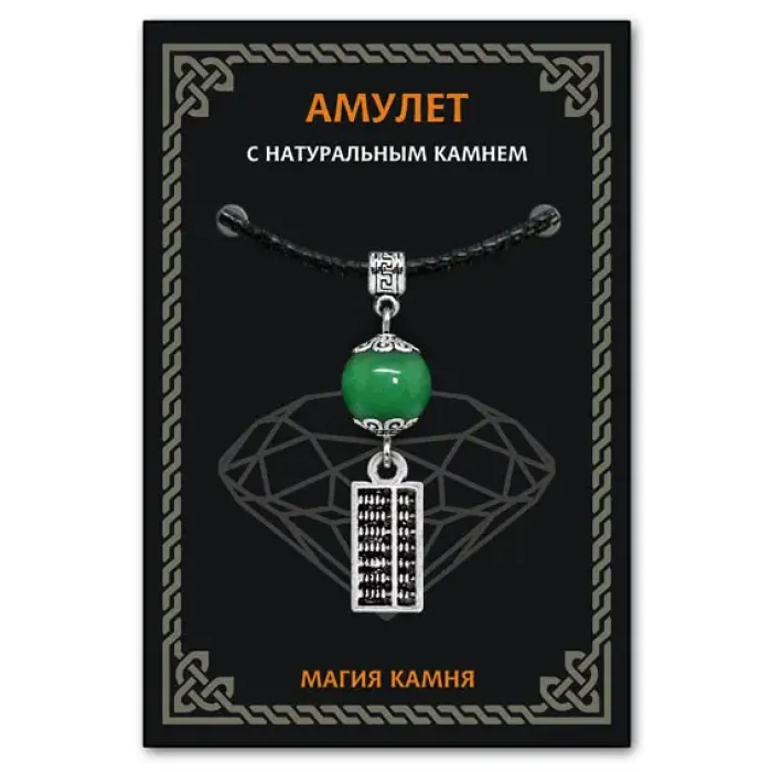 Амулет Счёты из нефрита — это не только стильный аксессуар, но и символ богатства и благополучия. Нефрит традиционно ценится за свои качества: доброту, мужество и терпение. Этот амулет защищает от сглаза и болезней, а также способствует семейному счастью. В комплект входит черный хлопковый шнурок для удобного ношения. Упаковка выполнена в прозрачном полипропиленовом пакете с европодвесом, что делает его отличным подарком или сувениром. На обратной стороне вкладыша указаны значения камня, что добавляет дополнительную ценность этому уникальному изделию.