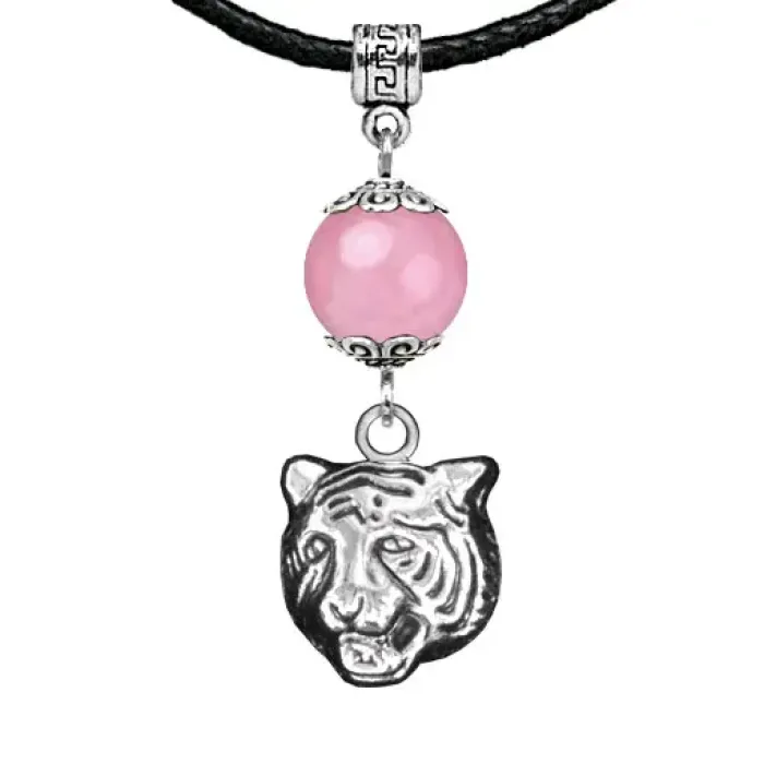 Амулет Тигр (защита, сила, победа), розовый кварц MKA28-10